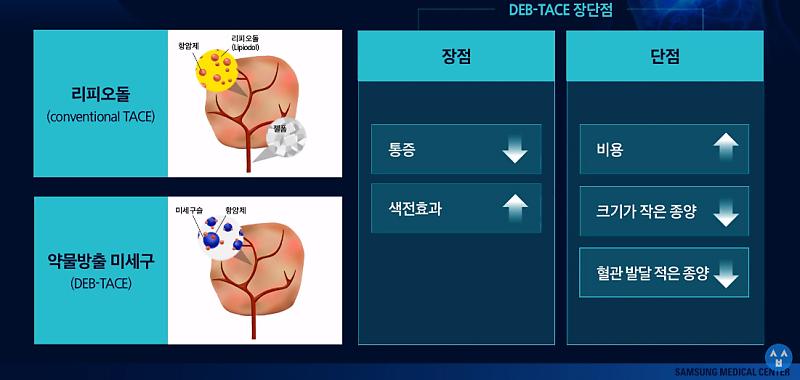 암이 있는 혈관을 찾아 항암제를 투여하고 그 혈관을 막아 암을 공격합니다. 최근에는 미세구나 방사성 동위원소(Yttrium-90)를 이용하는 새로운 치료법도 있습니다.