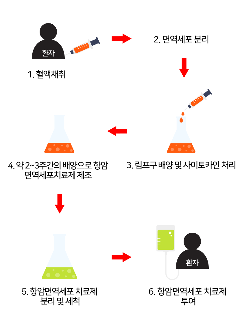 자신의 혈액 속 면역세포를 배양하여 강력한 항암작용을 하는 맞춤형 면역항암제입니다. 재발율을 낮추고 무병생존기간을 연장시키는 효과가 있습니다.
