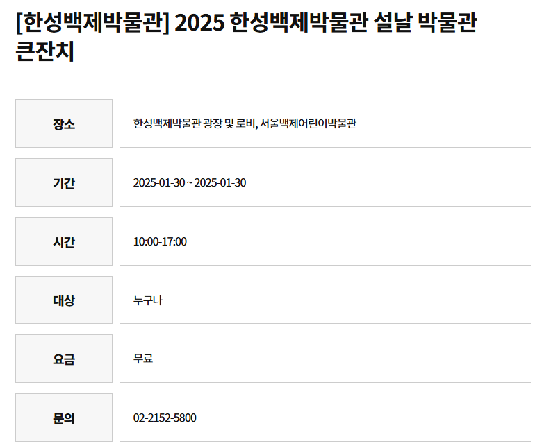 2025 한성백제박물관 설날 박물관 큰잔치